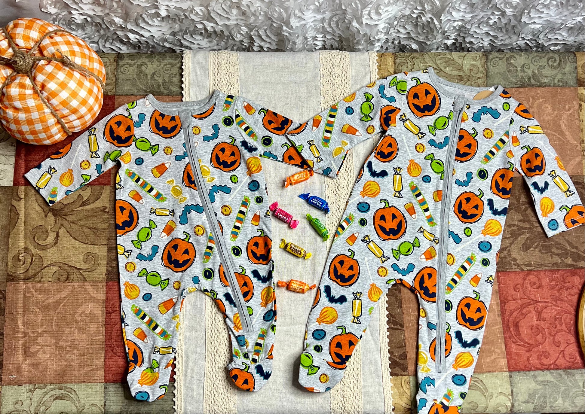 MudPie zip front onesie sleeper with fall charm. Perfect for the little one this season! 95% cotton and 5% spandex.