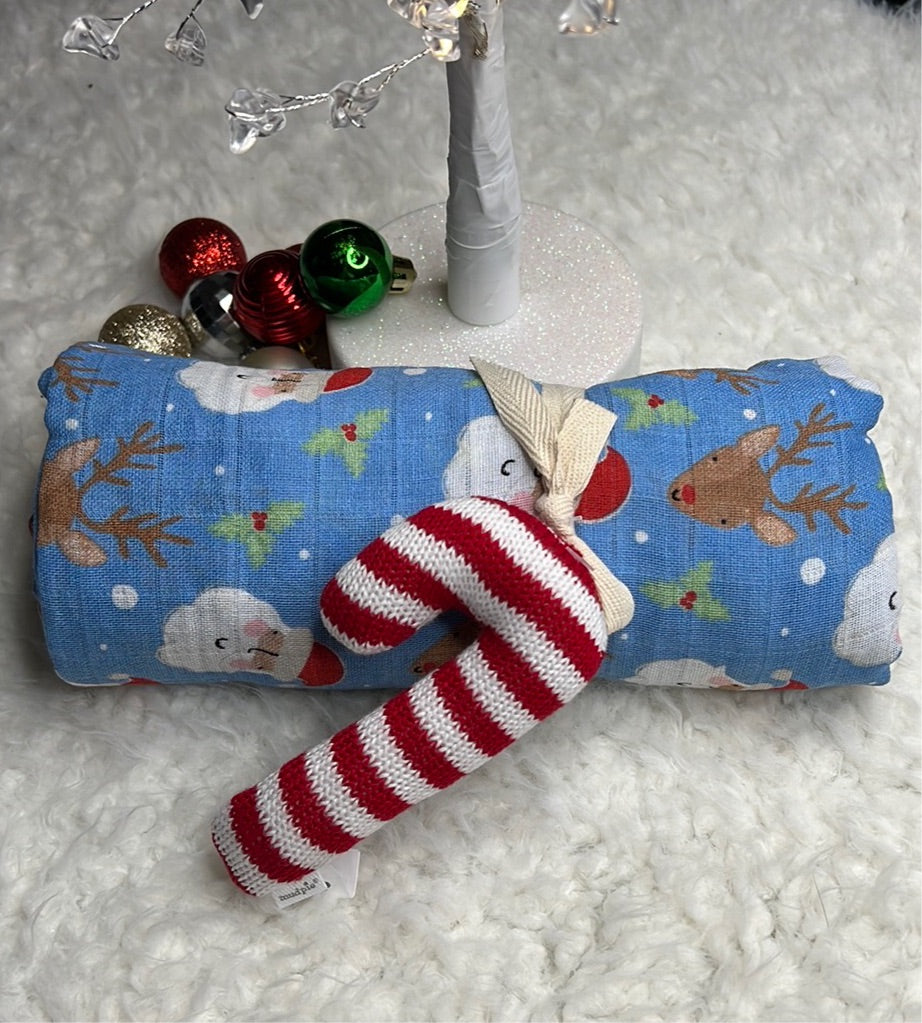 Santa’s Reindeer Muslin Blanket and Toy Set