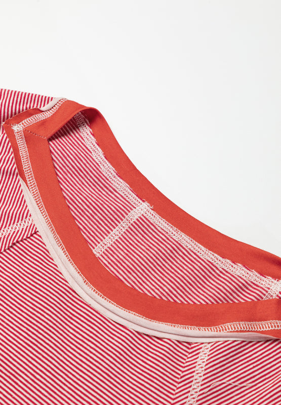 Striped Floral Patchwork Round Neck Top