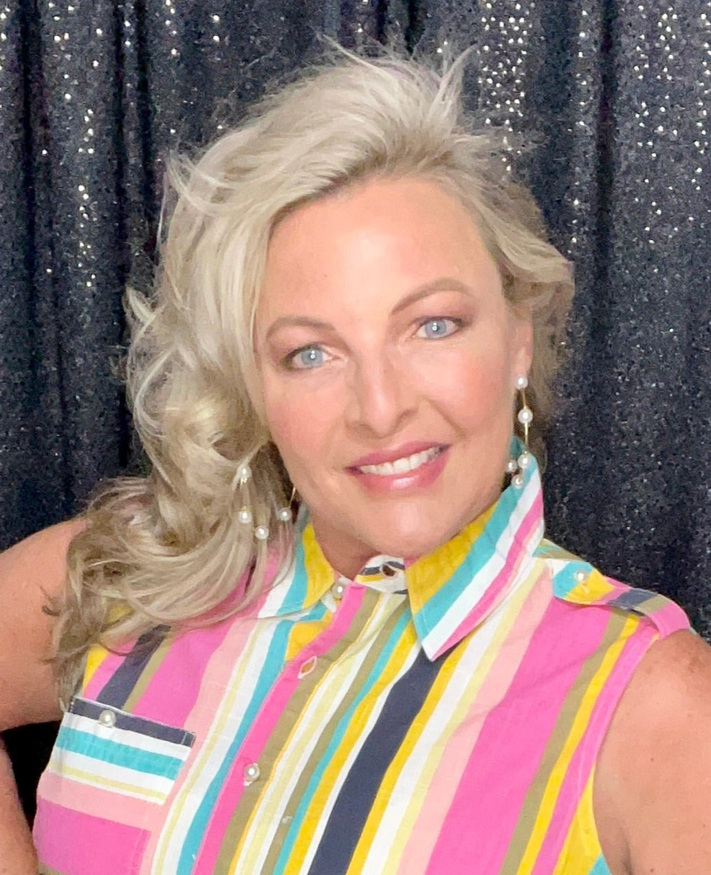 Delightful colored summer stripes. Collar for extra crisp style. Pearl buttons and a tie waist. 100% cotton with a linen feel. Cool and comfortable.
