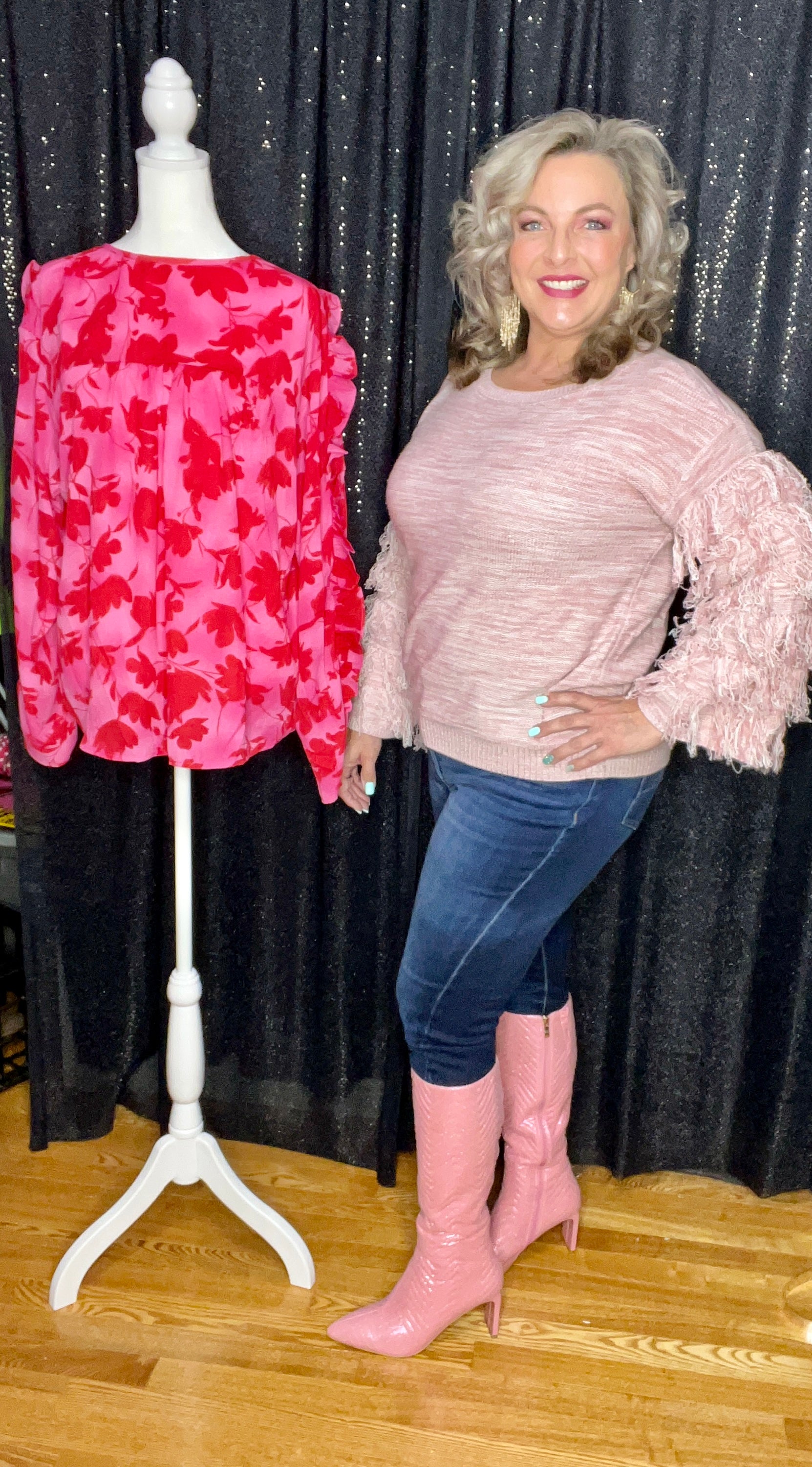 Pink, quilted fabric with sparkle and shine. Sure to turn heads!